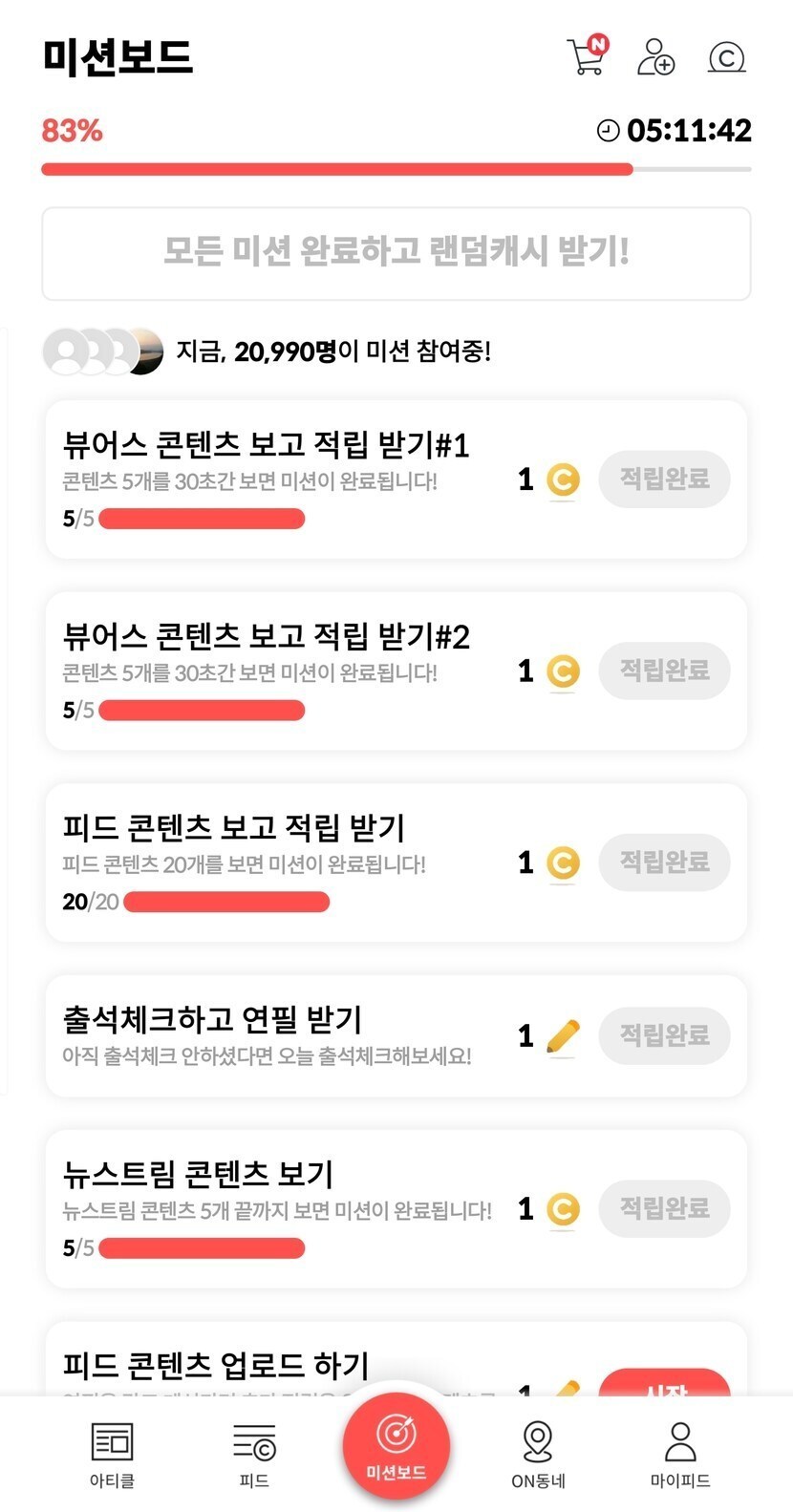 업로드 미션만 하면 완료
