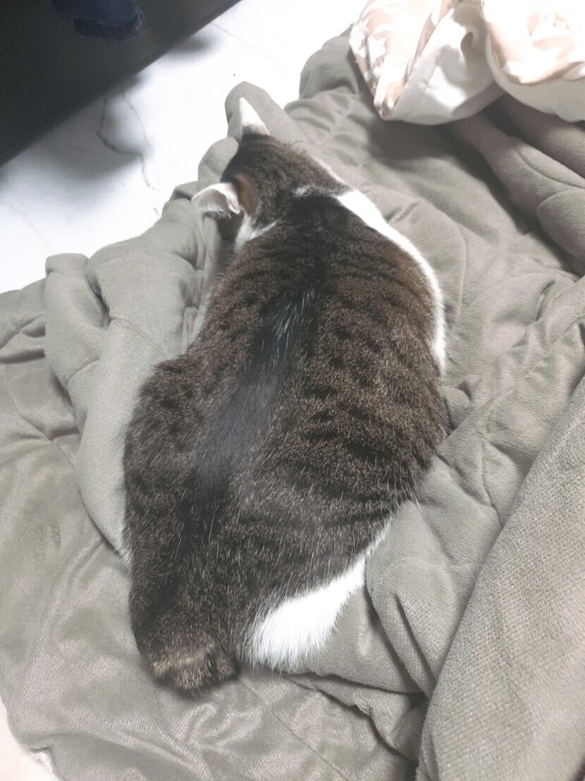 이불위에서자고있는 귀여운아이