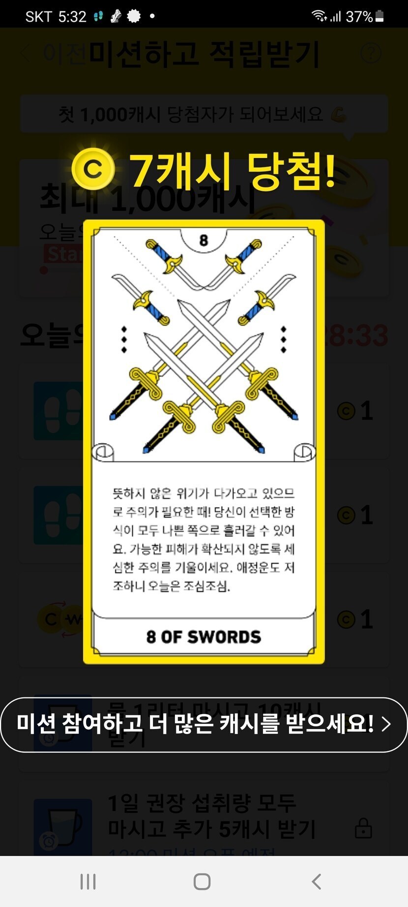 오늘의 타로 완료