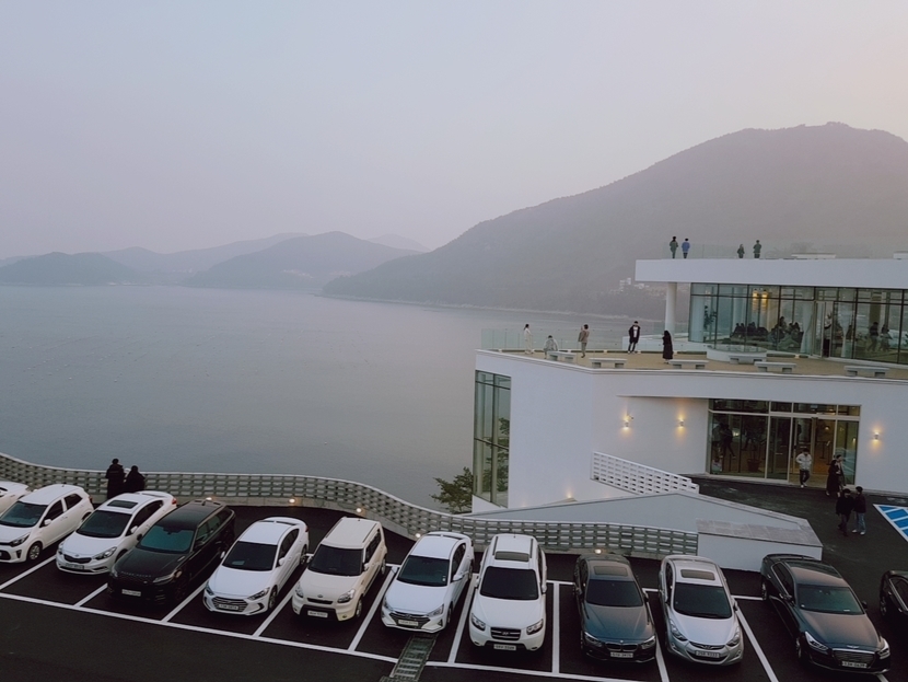 주차장도 넓고 벽 한쪽이 모두 통유리로