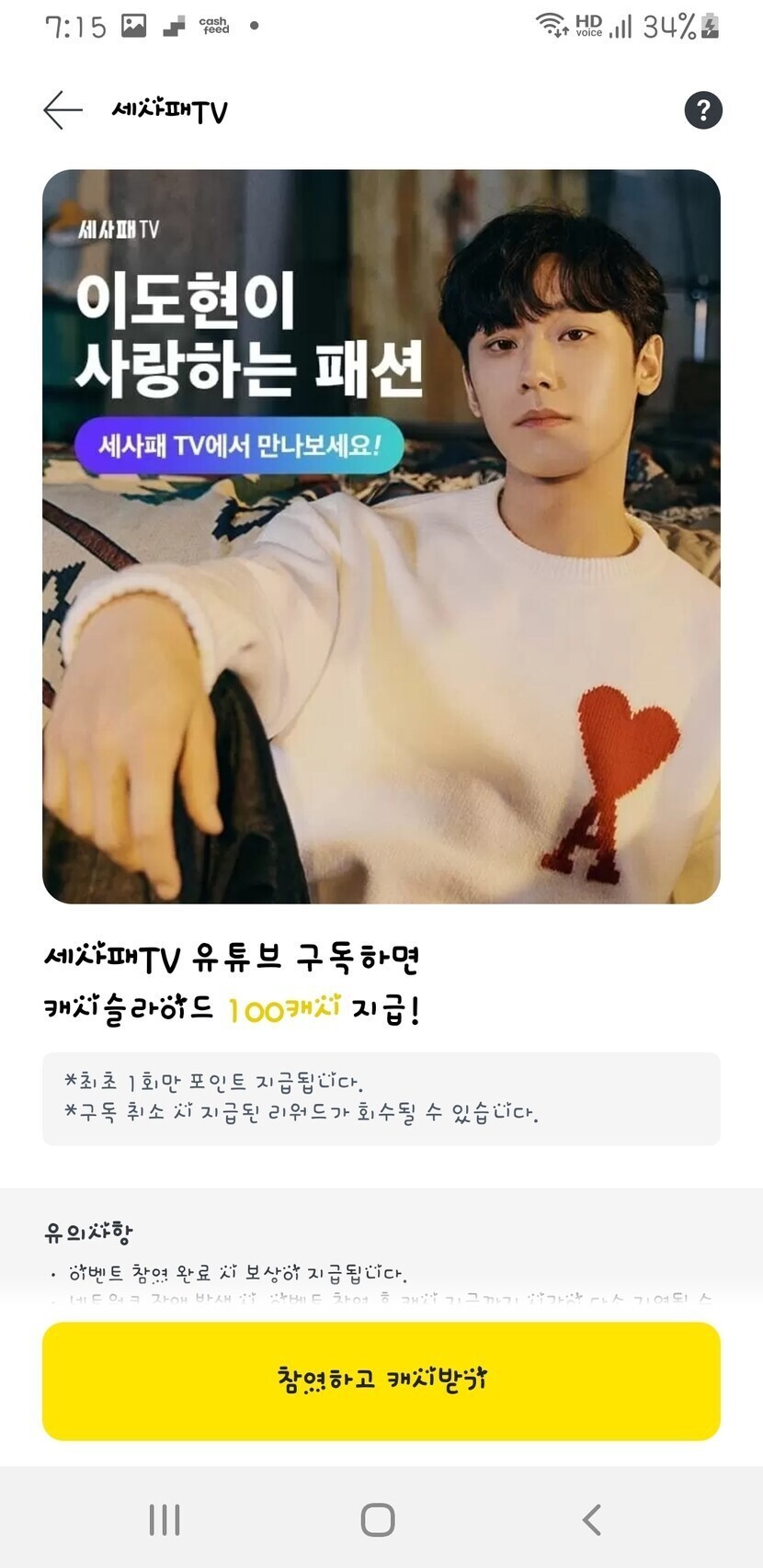21.12.03 889 읽음 세사패TV 구독하고 100캐시 받아보세요 jjini27 (답방갑니다) 구독하기 88 79 콘텐츠의 수익 15 세사패TV 유튜브 구독하고바로 100캐시 준다네요 가능하신분 바로 고고씽즐점들하셨나요?오후도 화이팅해봐요아쟈~^^!! 79 0 / 300 입력