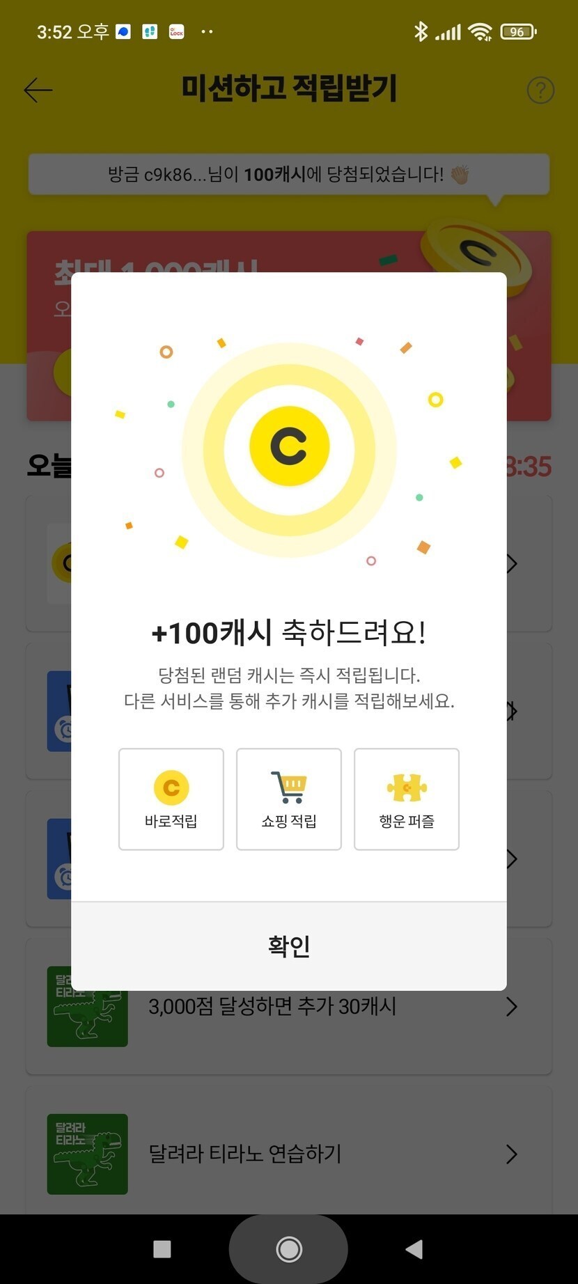 100캐시 당첨