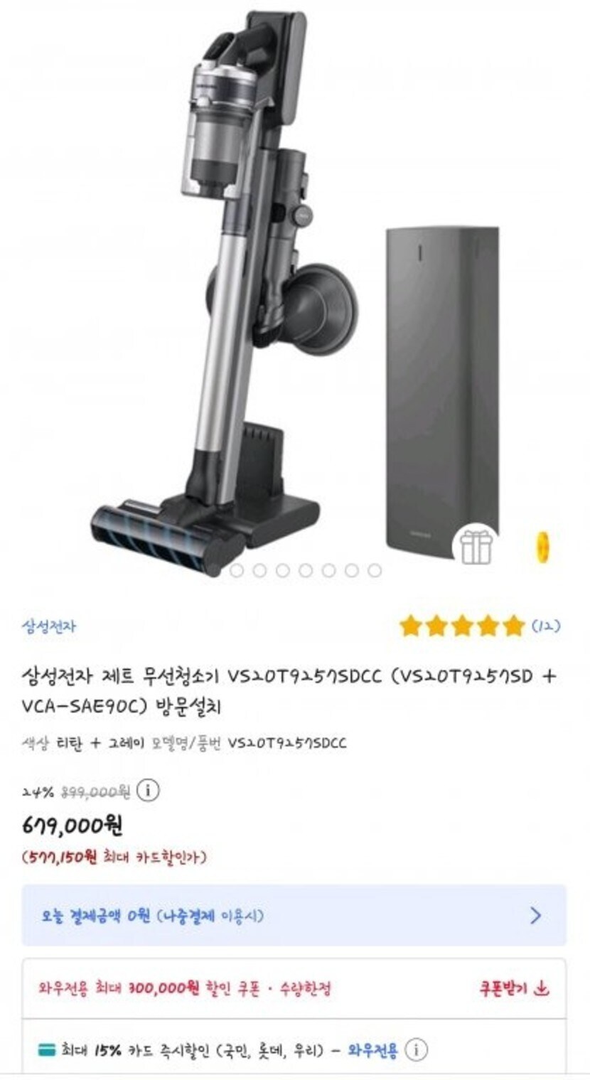 [쿠팡핫딜]삼성전자 제트 무선청소기 VS20T9257SDCC (VS20T9257SD + VCA-SAE90C) 방문설치(697,000/3,000)
