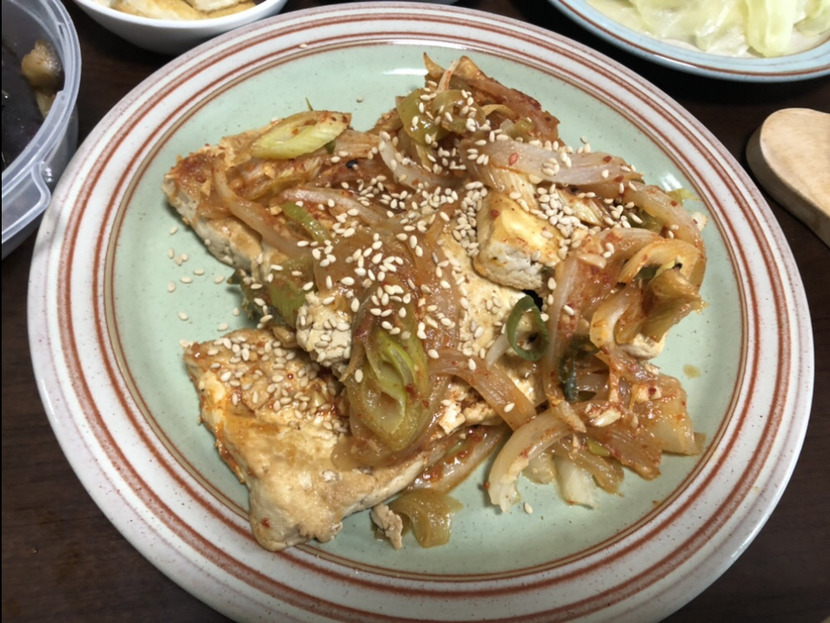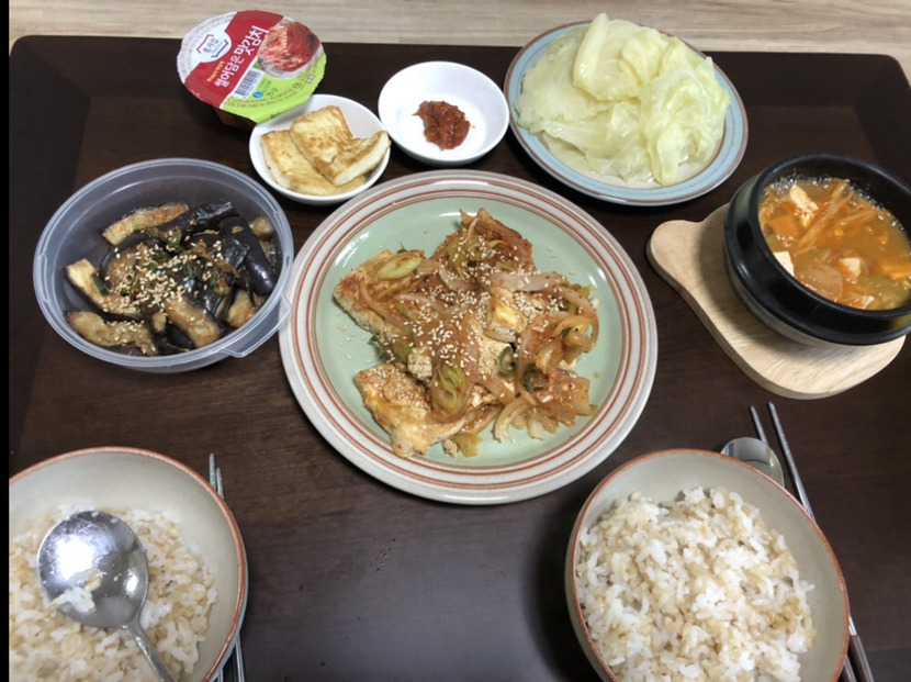후라이펜에 기름을 두르고 물기뺀 두부를 노릇노릇 구워줍니다~