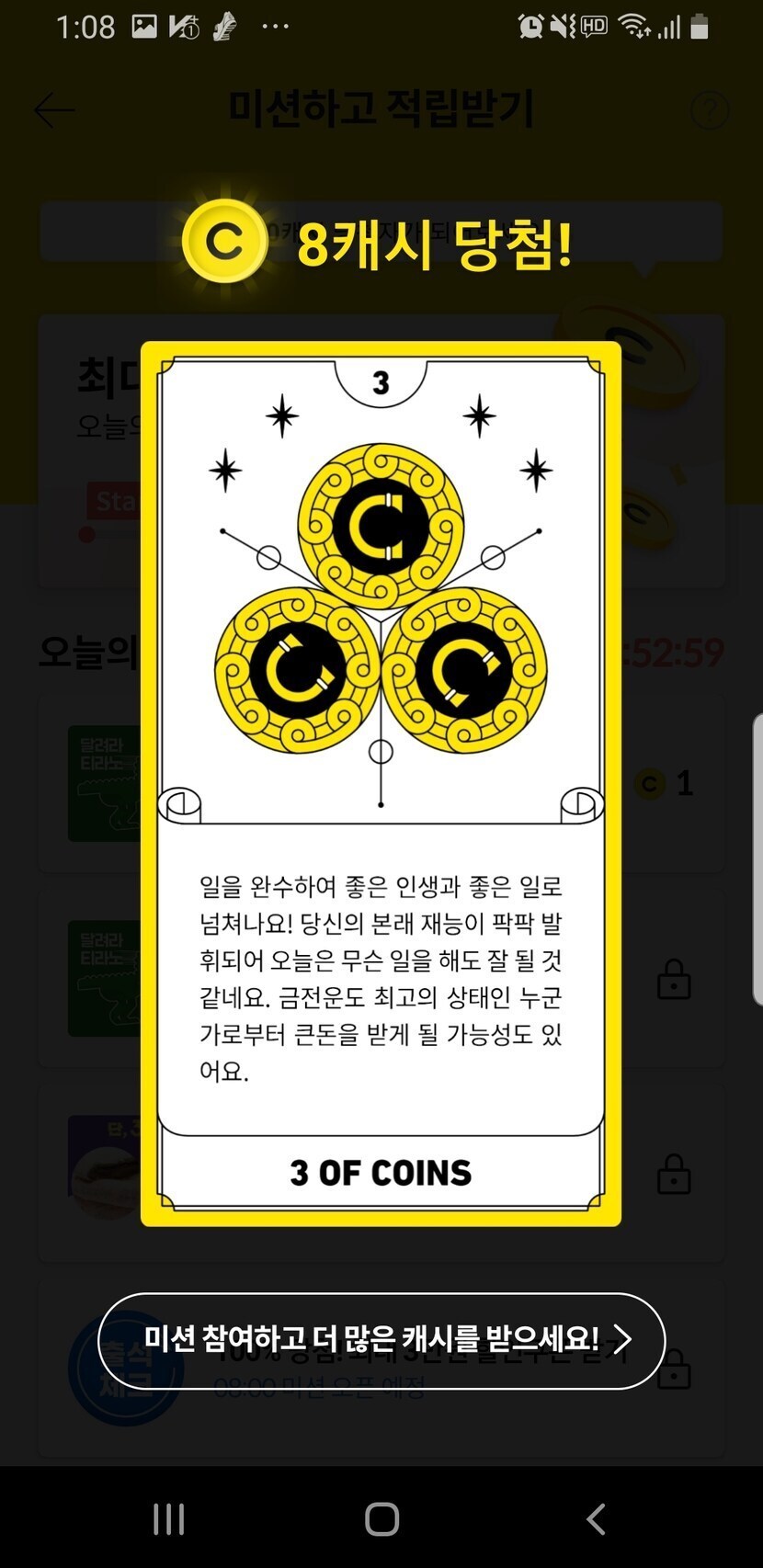 출석체크 타로미션 미션성공ㅋㅋㅋ