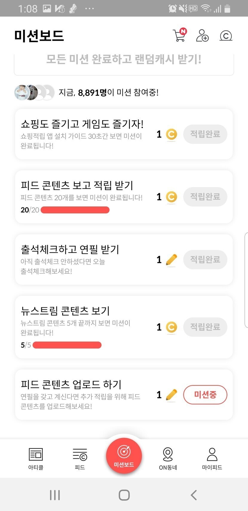 출석체크&타로미션&글쓰고 미션성공