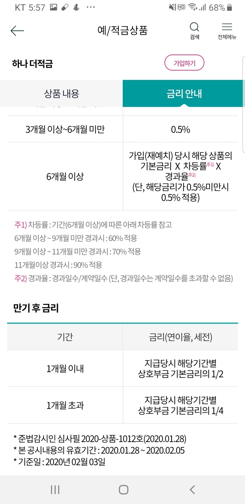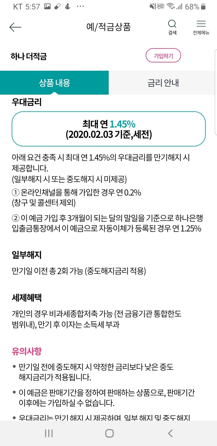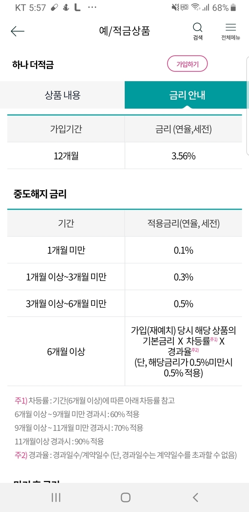 인터넷에는 19만명이 몰렸다고하는데 5%로라고 하니 요즘같은때에 높게 느껴지는데 조건이 맞춰줘야 하는거고(근데 월급통장이 하나은행이라 저는 가능했어요) 기본은 3.56%정도..