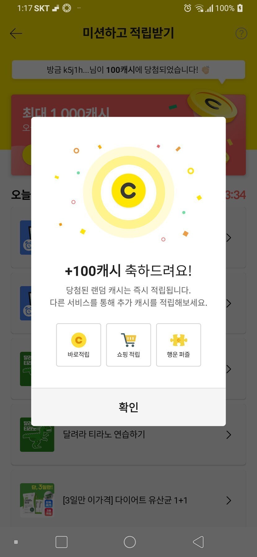 100캐시 인증입니다