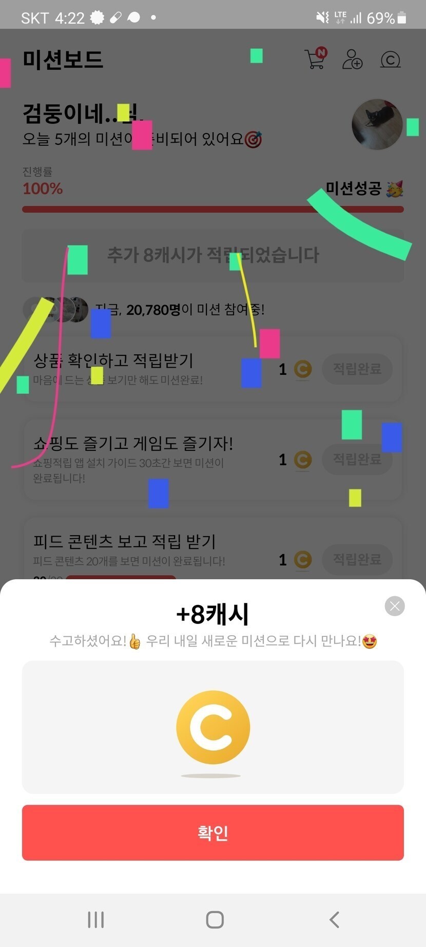 22.01.21 107 읽음 왠일로..8캐시가 연속?? 🙄🙄 검둥이네.. 구독하기 21 20 콘텐츠의 수익 5 원래.미션수행해도.3'4캐시인데...왠일로..8캐시가 2번연속~!!땡큐'네용~^^ 20 0 / 300 입력