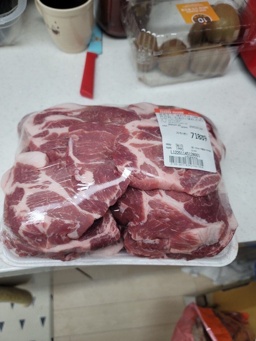 캠핑가서 먹을 음식들이 왔어요