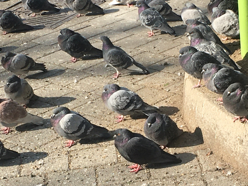 모여서 일광욕하는 비둘기보고