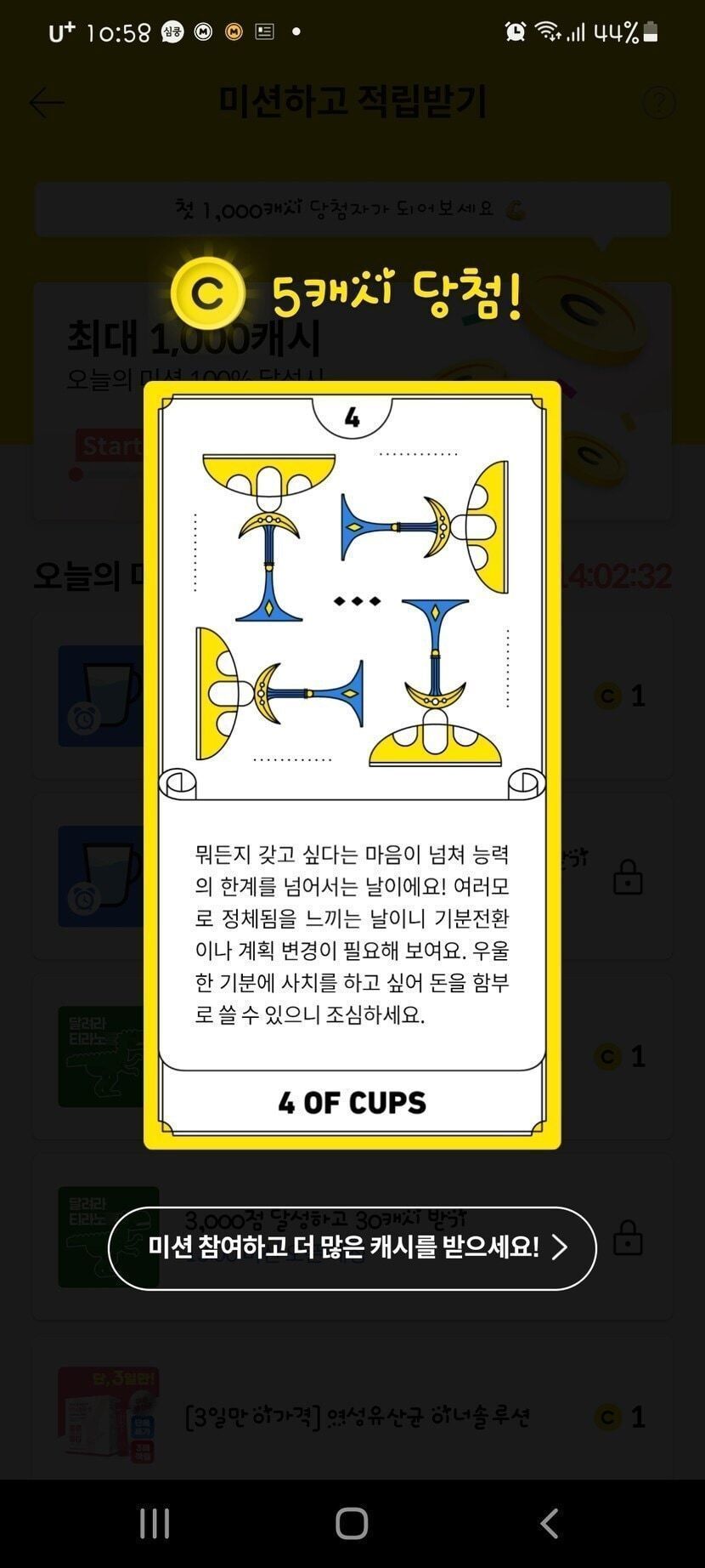 답방끝) 1/26 타로 물마시기 행운퍼즐