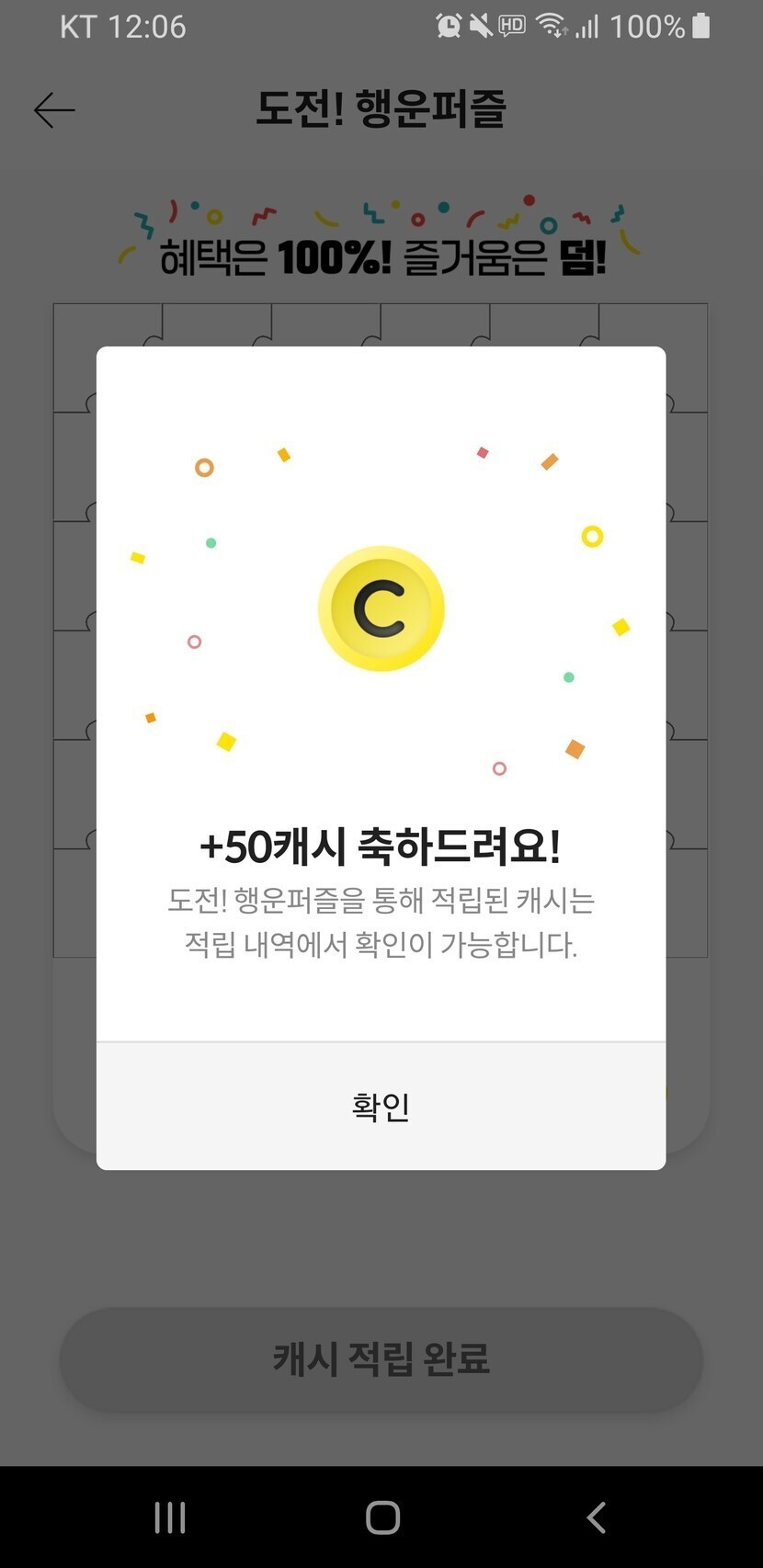 행운퍼즐 50캐시 완성
