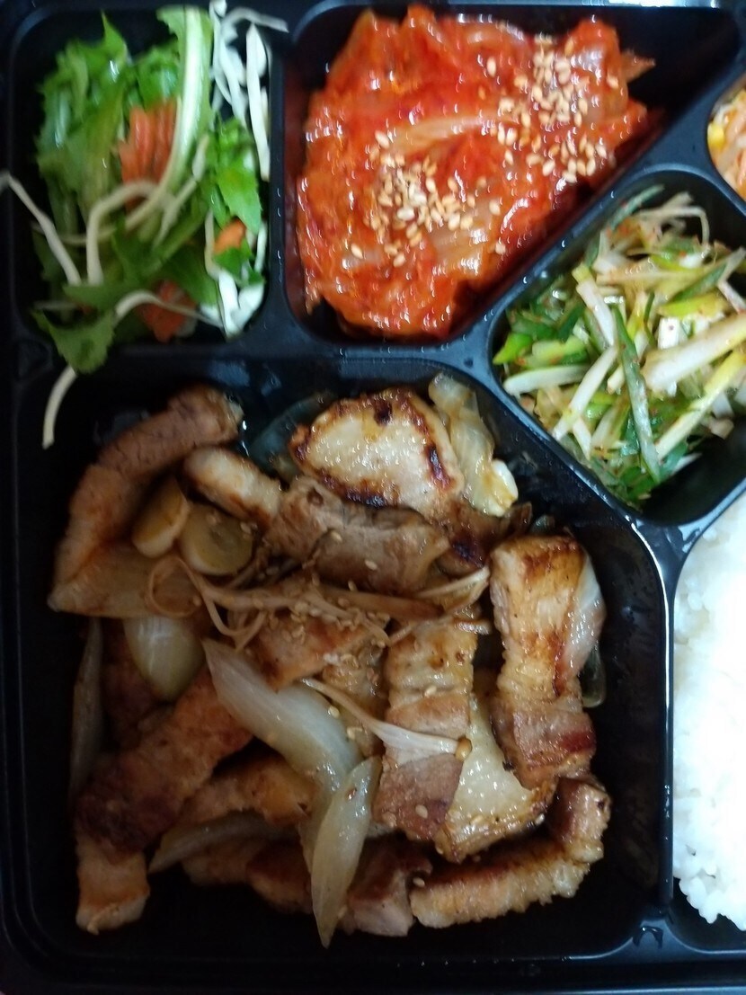 늦은 점심 고기 명이나물 쌈무