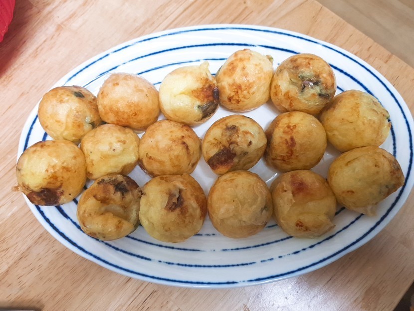 20.02.10 2,107 읽음 집에서 초간단 타코야끼 만들었어요😊 끼잉까앙 구독하기 18 189 콘텐츠의 수익 307 집에 그냥 있는 재료들로 초간단하게 만들어 봤어요ㅎㅎ물,부침가루,계란,새우,파,타코야끼소스,마요네즈,가다랑어포이렇게만 사용했어요타코야끼팬에 기름을 살짝 발라주고 반죽을 70%정도 넣어줘요 (꽉 채워도 상관없어요 재료들 넣고 반죽을 팬 가득 채워줄거라)새우와 파를 넣어주고 반죽을 팬에 가득 차게 넣어줘요어느정도 구워지면 젓가락으로 긁어주면 저절로 동그랗게 말려요다 만들어지면 꺼내서 타코야끼소스,마요네즈를 뿌리고 그위에 가다랑어포만 올려주면 초간단 타코야끼 아니 사실은 에비야끼죠ㅋㅋㅋ문어대신 새우를 넣어서ㅋㅋㅋㅋㅋㅋ문어빵틀이 별로 안비싸서 하나 사두면 집에 있는재료들 아무거나 꺼내서 해먹어요 치즈가 있으면 치즈도 넣어먹고 햄도 넣어먹고 다양한 타코야끼 해먹을 수 있어서 좋아요! 189 0 / 300 입력