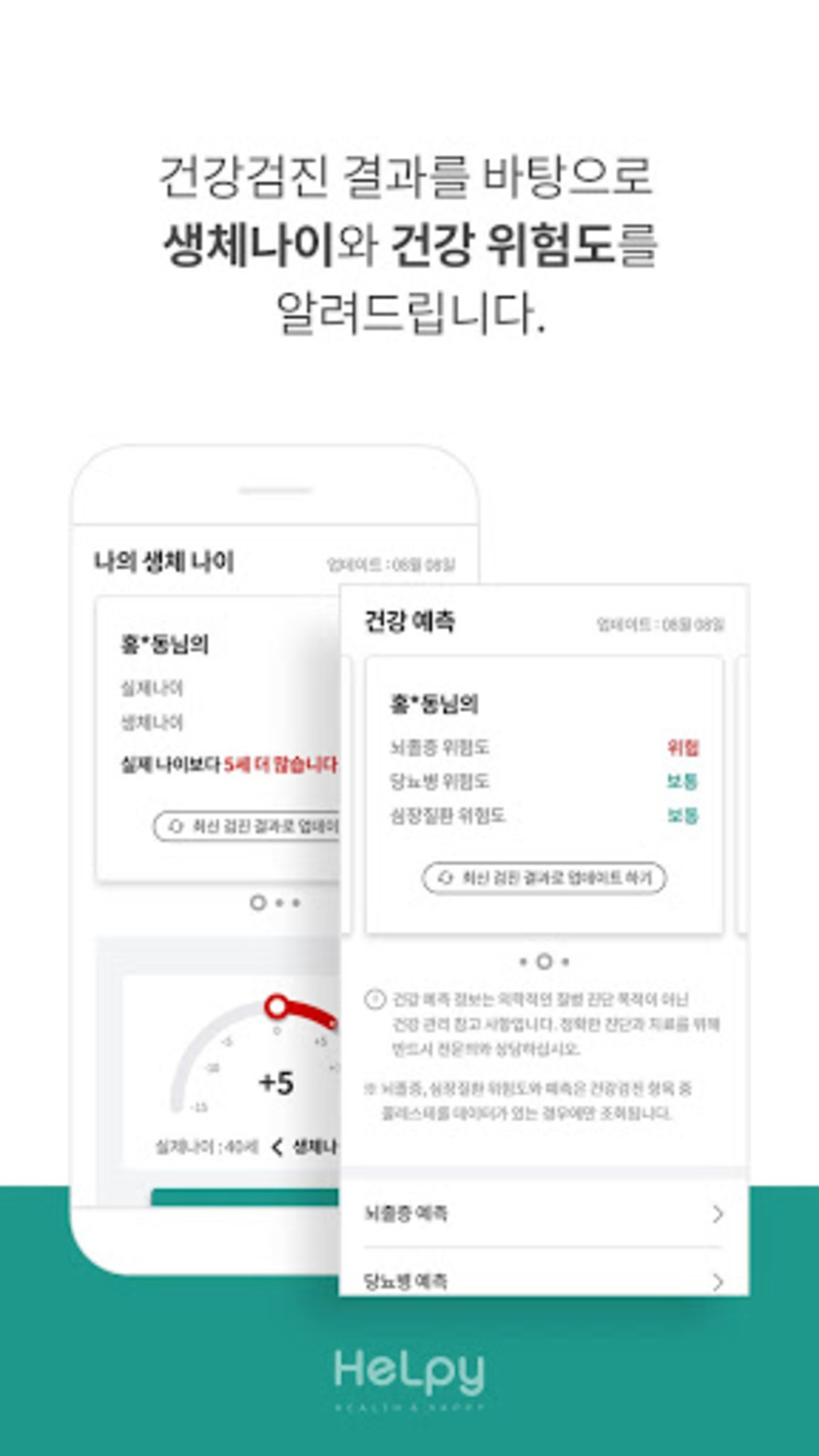 ▶ 건강검진 결과 조회를 통해 나의 생체나이, 질환 위험도 예측