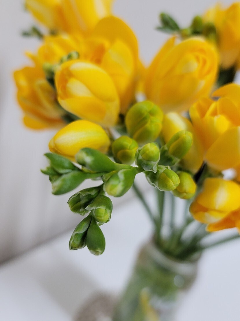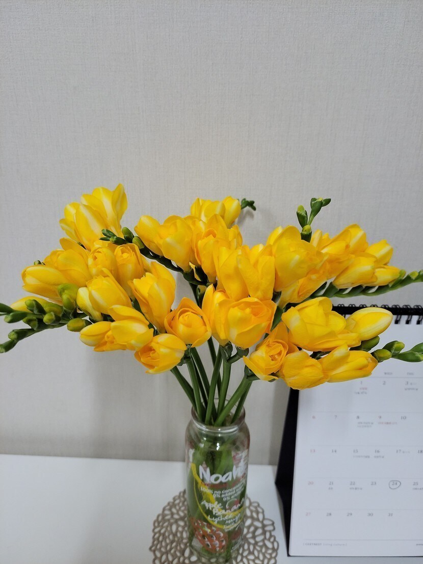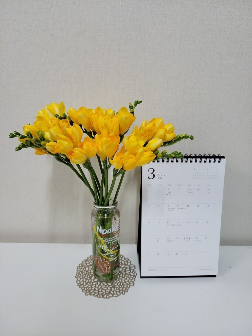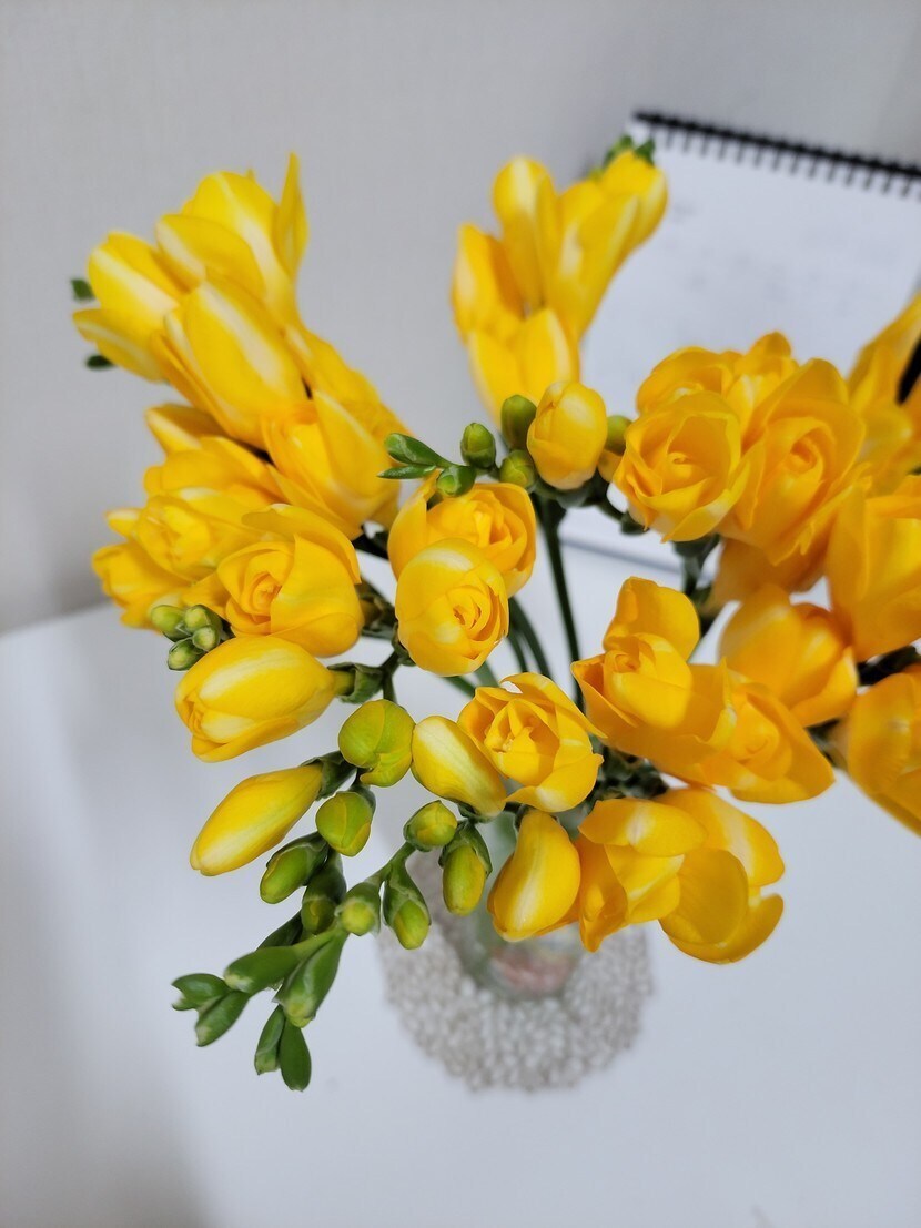 22.03.07 784 읽음 프리지어 sim60sim 구독하기 16 27 콘텐츠의 수익 16 오늘 프리지어꽃을 선물받았어요~^^화사한 노란 빛깔과 동글동글 귀여운 모양새신선하고 향긋한 향기로봄을 알리는 꽃 중 하나죠졸업식이나 입학식 꽃다발로도 많이 쓰이는데,프리지어 꽃말때문인 듯 해요프리지어의 꽃말은천진난만, 자기자랑, 청함, 당신의 앞날이라는 꽃말 외에 '당신의 시작을 응원해'라는 꽃말이 가장 잘 알려져 있죠올 봄,모든 분들의 새로운 시작을 응원합니다~^^ 27 0 / 300 입력