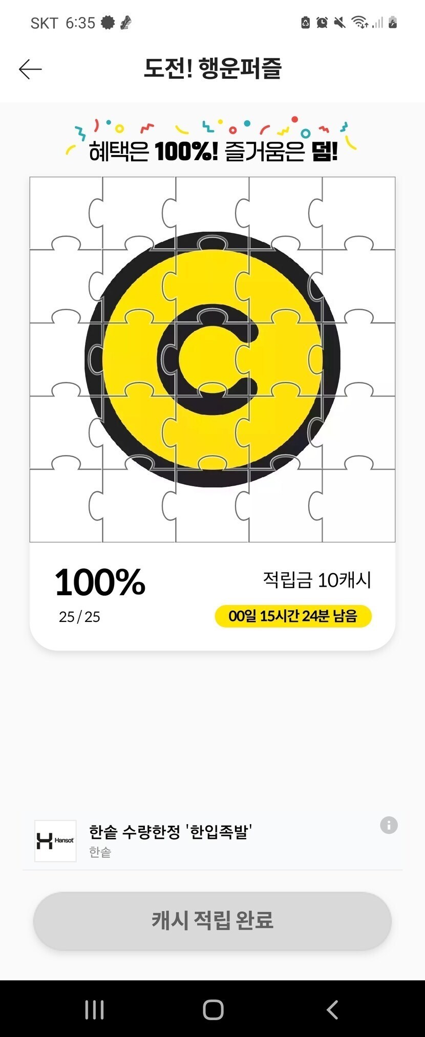 오늘 행운퍼즐 완성