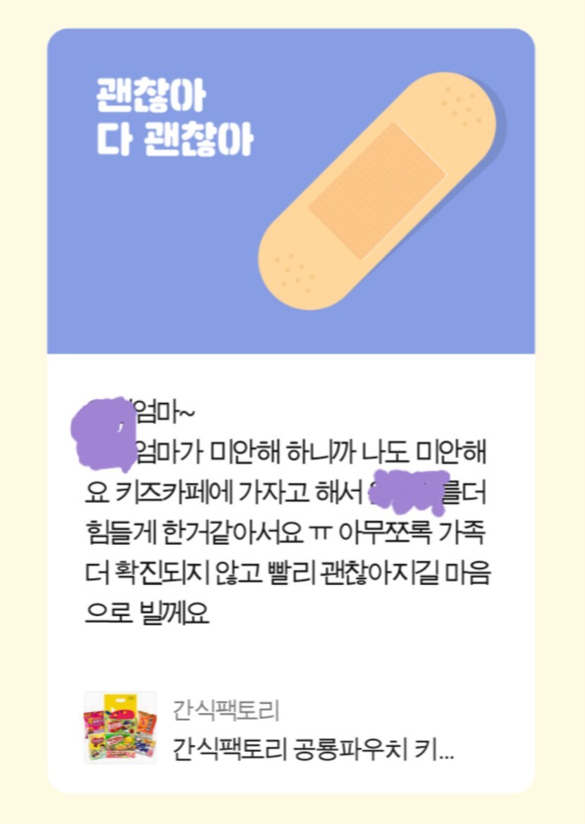 위로를 해주셨어요. 엄마니까 누구보다 제가 아프면 아이들 케어가 어려운걸 잘 알고 있으니까요.