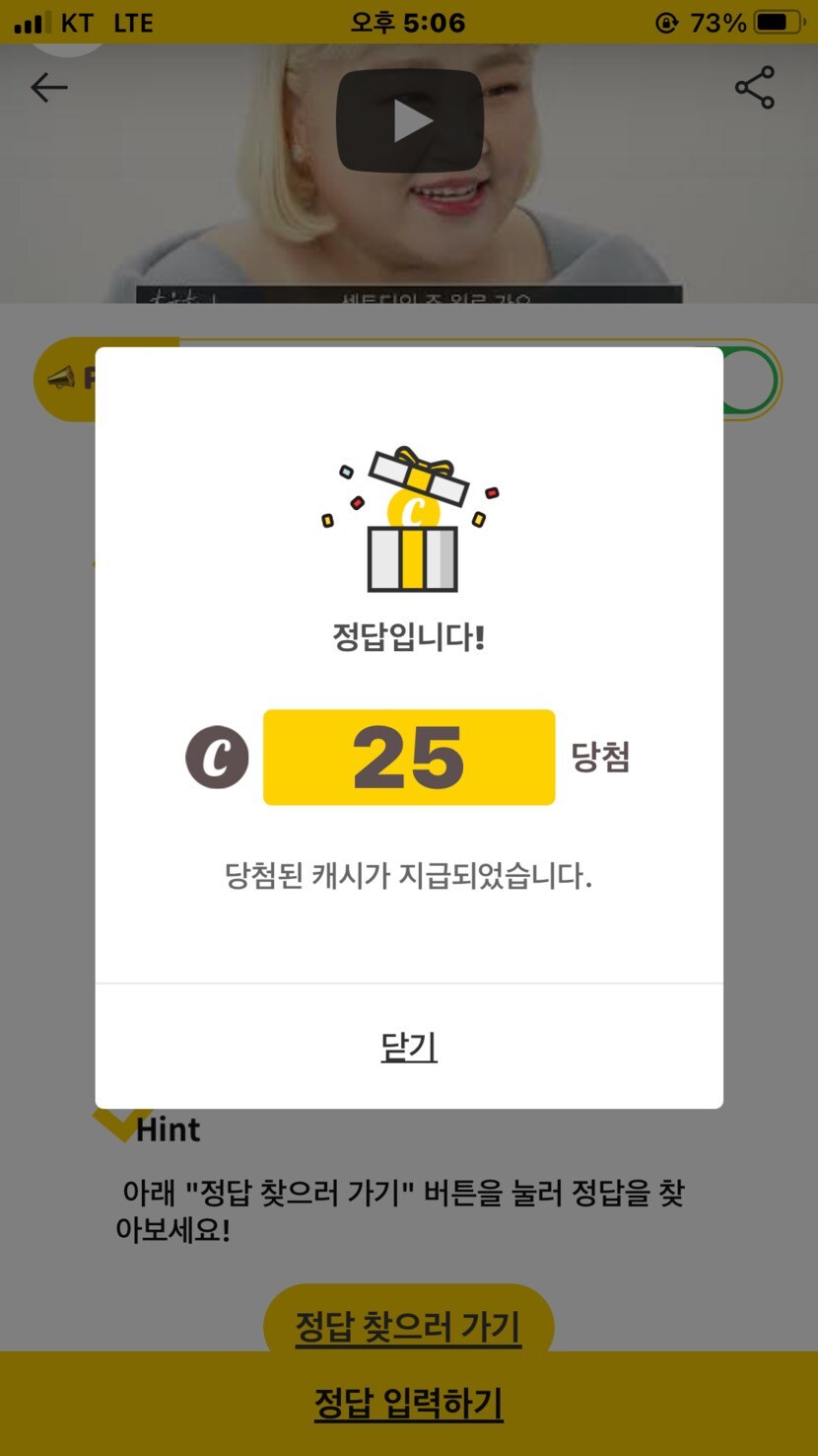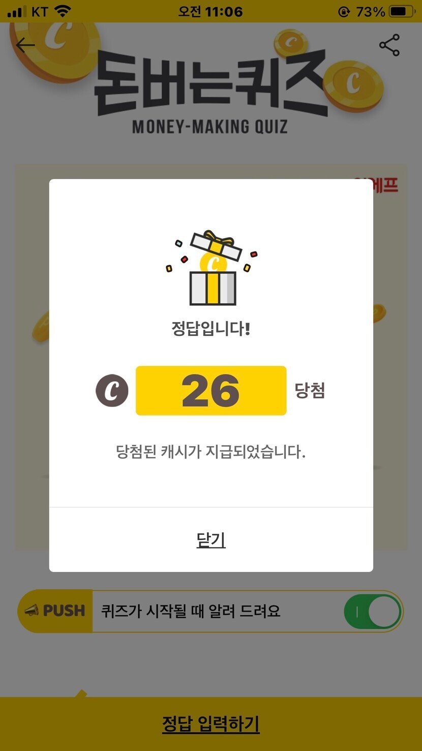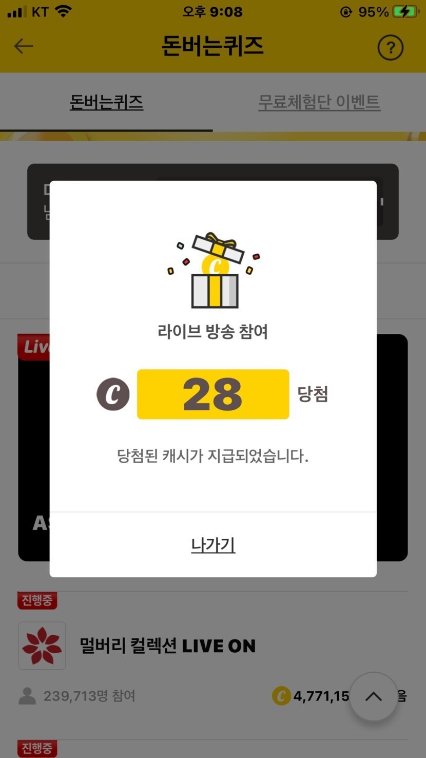 오늘 획득한 캐시