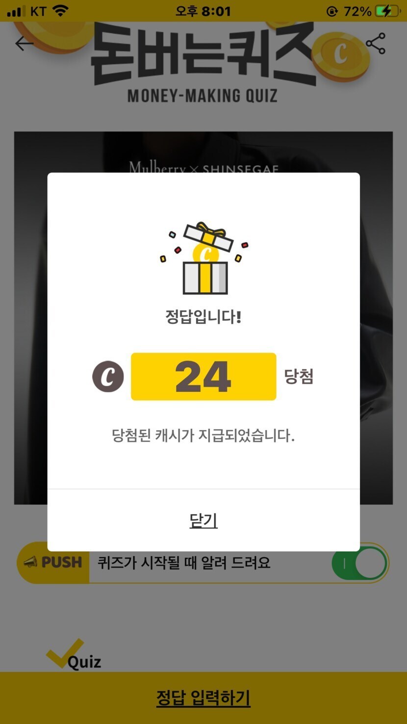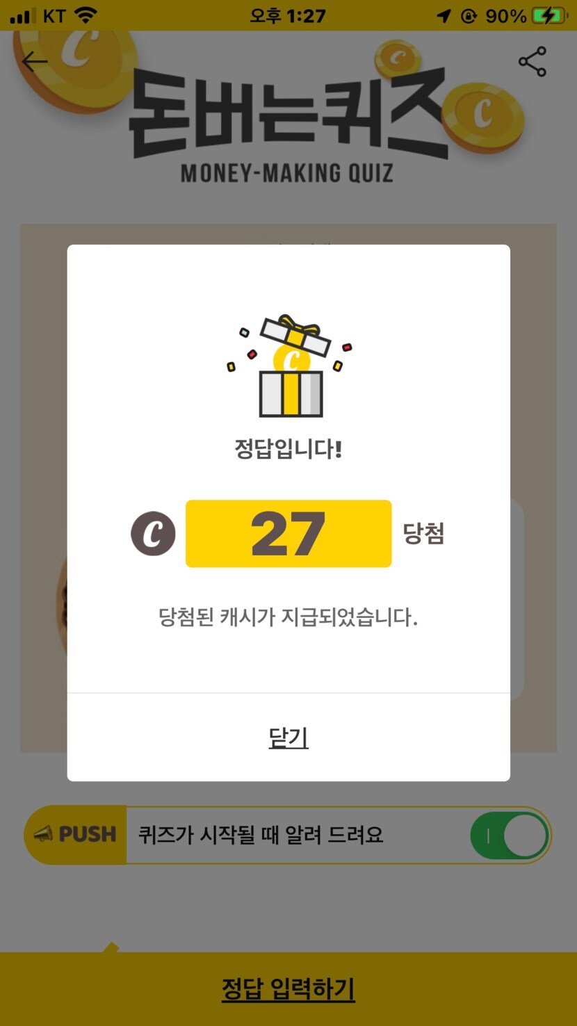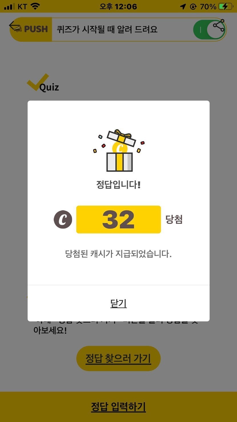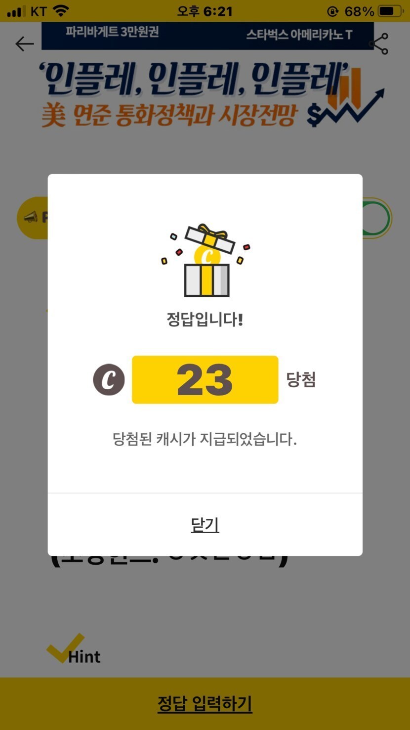 오늘 획득한 캐시