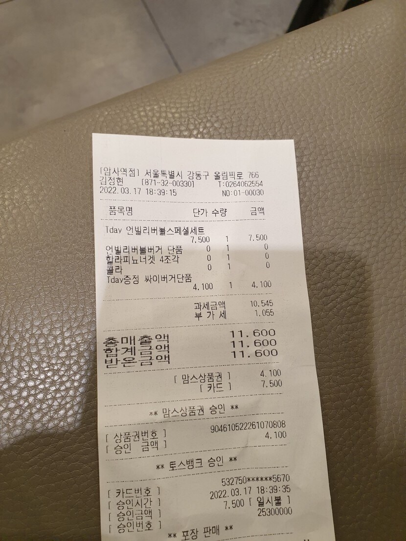 SK. T맴버십에 맘스터치 행사
