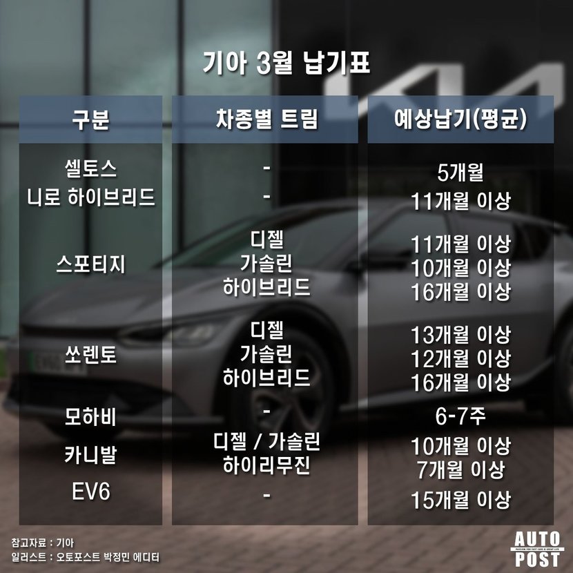 기아 SUV 출고 대기기간