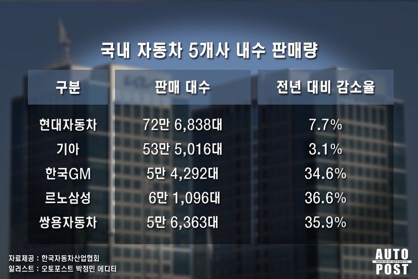 국내 자동차 5개사
