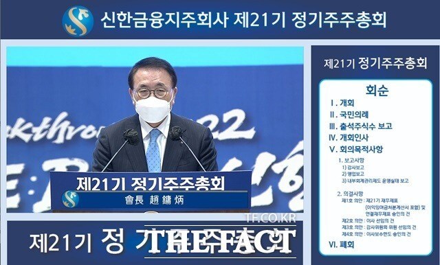 주총장에 참석한 주주들은 "코로나19 팬데믹 속 지속적인 성장을 이뤄준 신한금융에 고맙다", "대내외적 상황을 고려했을 때 배당 성향은 적절한 수준이라고 본다" 등의 의견을 밝혔다.