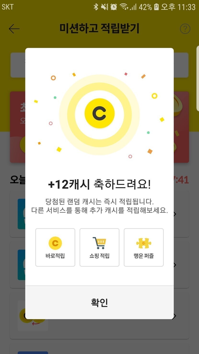 오늘 미션적립 캐시는 12캐시네요 ^^;