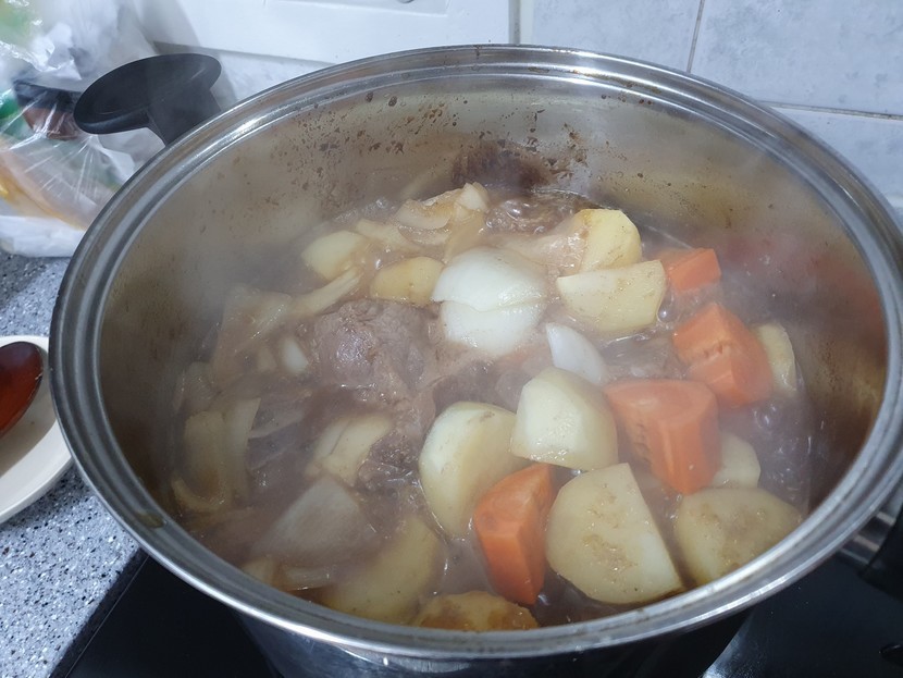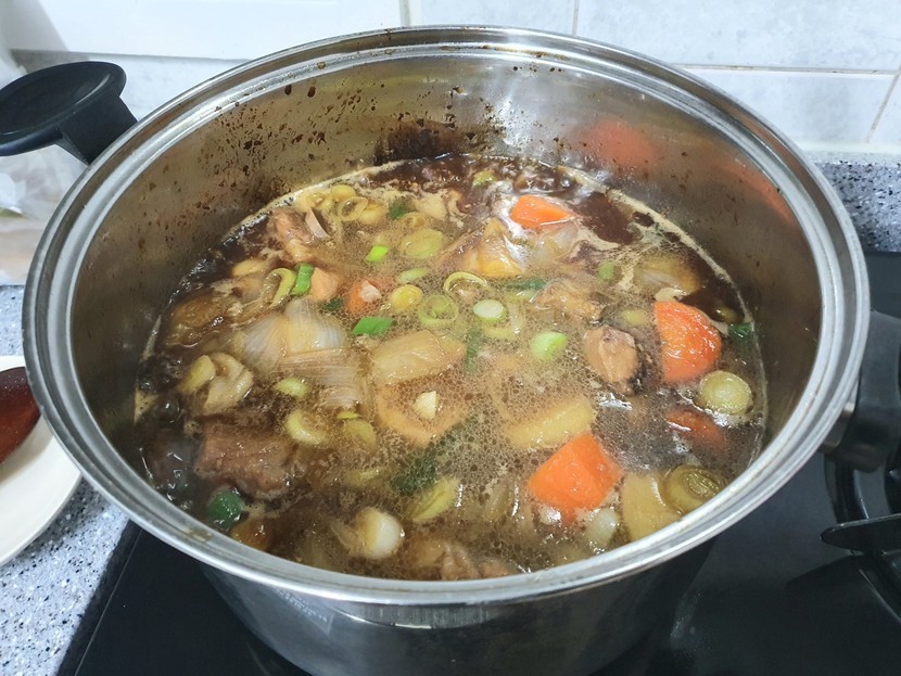 중불로 줄여주고는 양파. 감자. 당근을 넣어줬어요