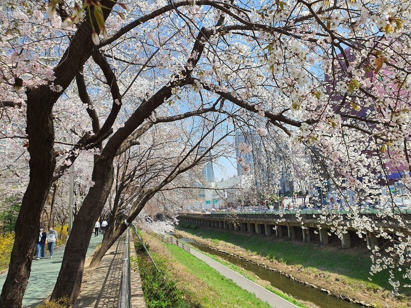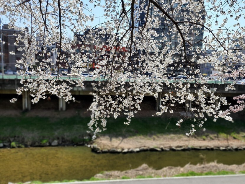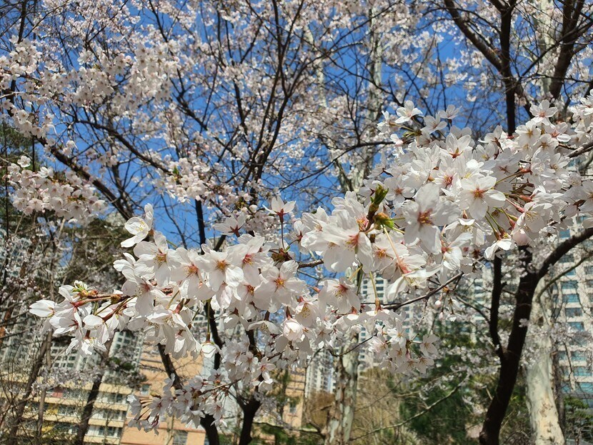 나가서 먹고 허니몽 들고 오면서 벚꽃길을 걸었네요.