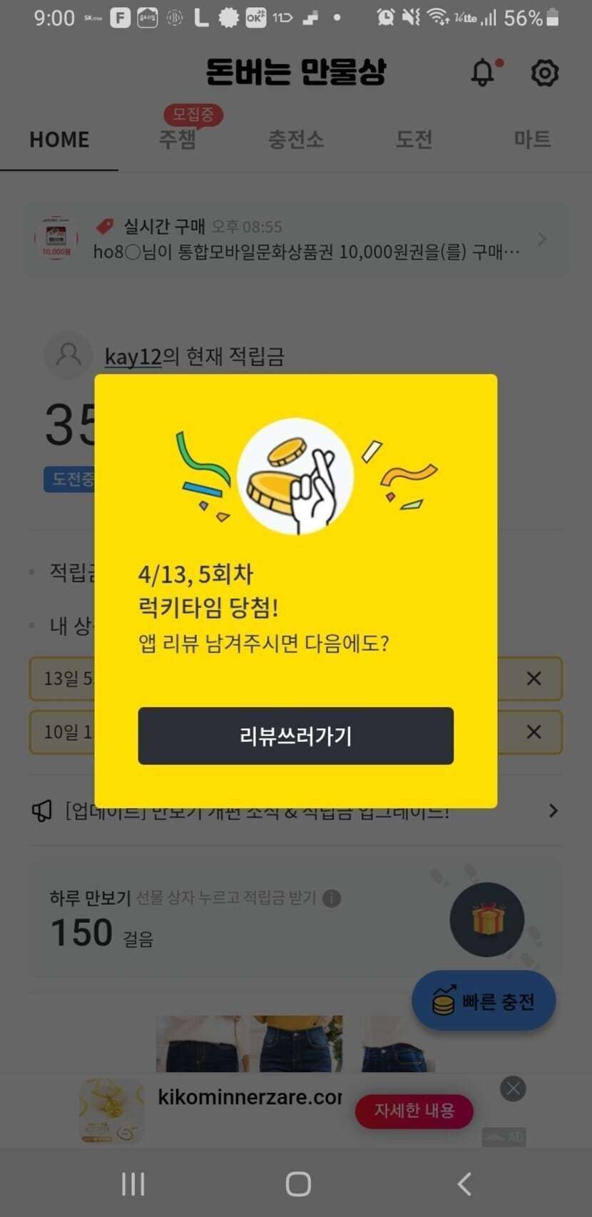 오늘도 보너스는 돈버는 만물상 100원당첨..