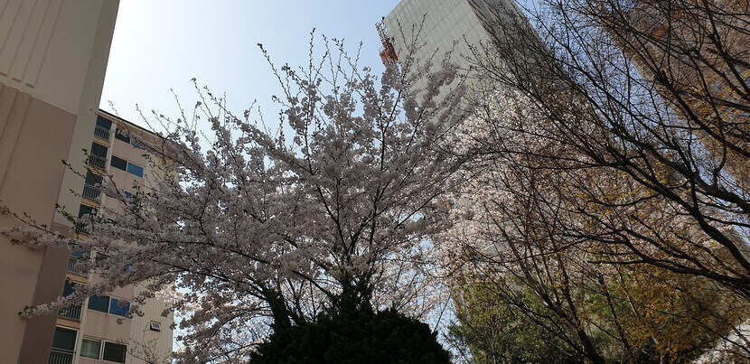 며칠전에 아파트 아래 벛꽃이 예쁘길래 아버지랑 잠시 걸으러 나갔어요..