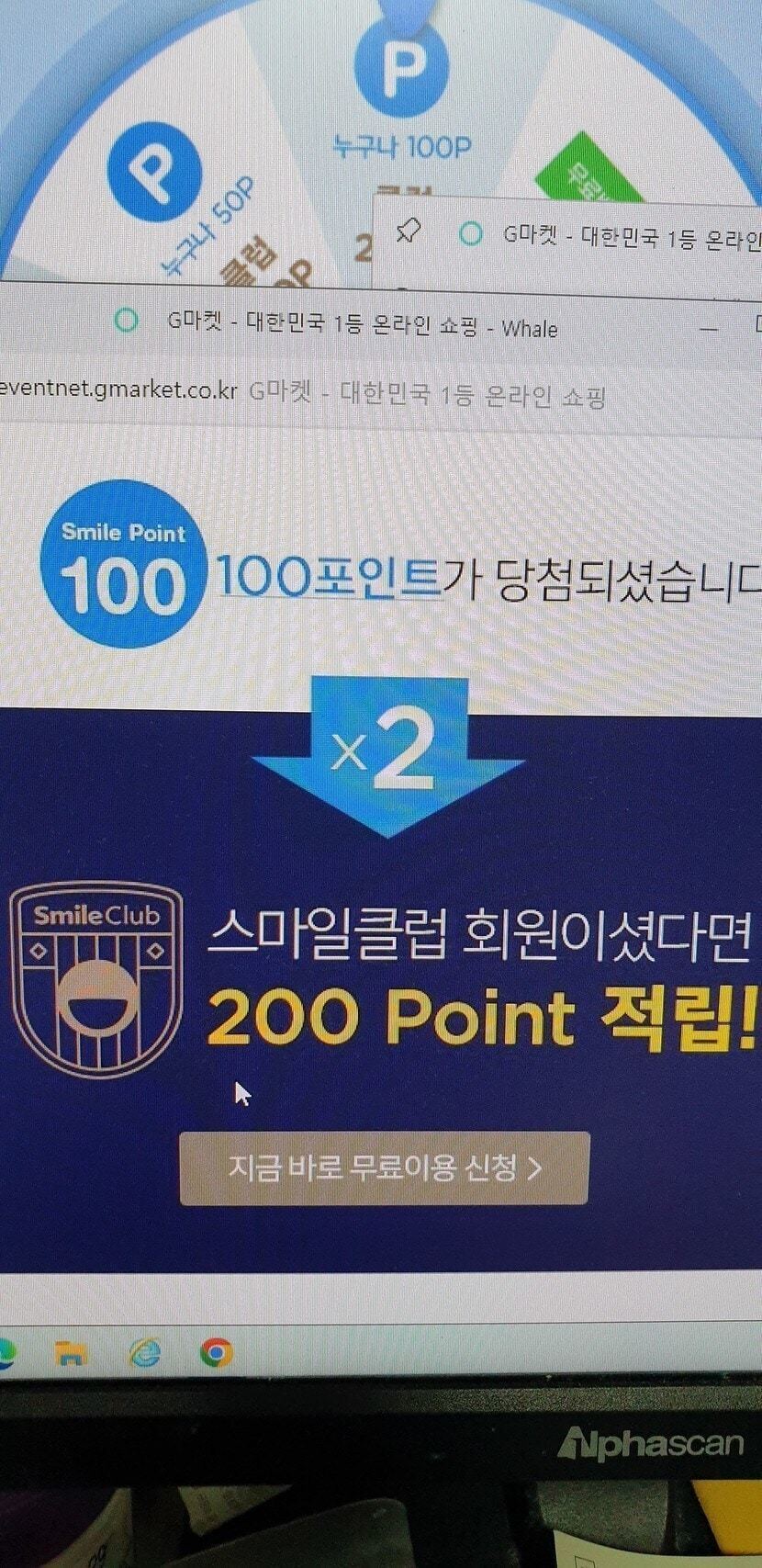그리고 엘 포인트, 지마켓 출석 룰렛 100포인트...