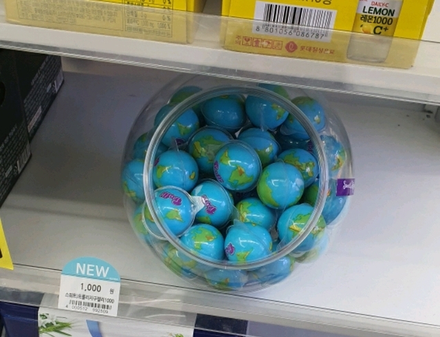집앞 지에스에 지구젤리 팔길래 먹어볼까하다가 가격보고 식겁해서 그냥 안삿는데 출근하니까 우리매장에도 지구젤리 있었음