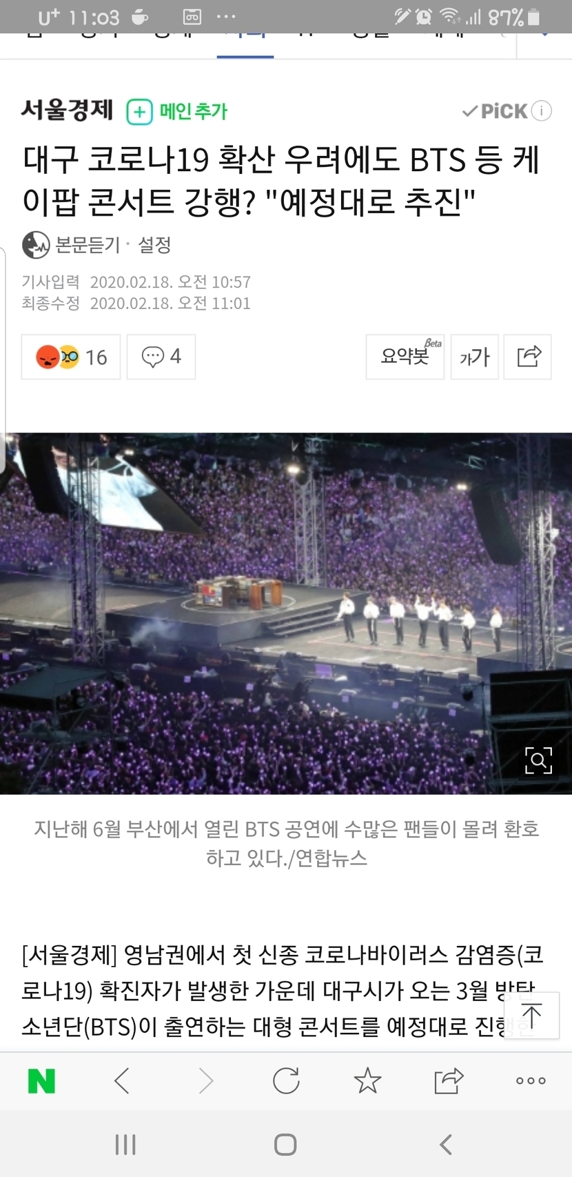 20.02.18 163 읽음 이시국에 대구에서 bts콘서트를 한다네요,, 곰티1228 구독하기 3 5 콘텐츠의 수익 16 너무 무책임한거 아닌가요? ㅡㅡ,, 수시로 대구 왔다갔다 하는디 정말 소름돋게 무섭네요,, 5 0 / 300 입력