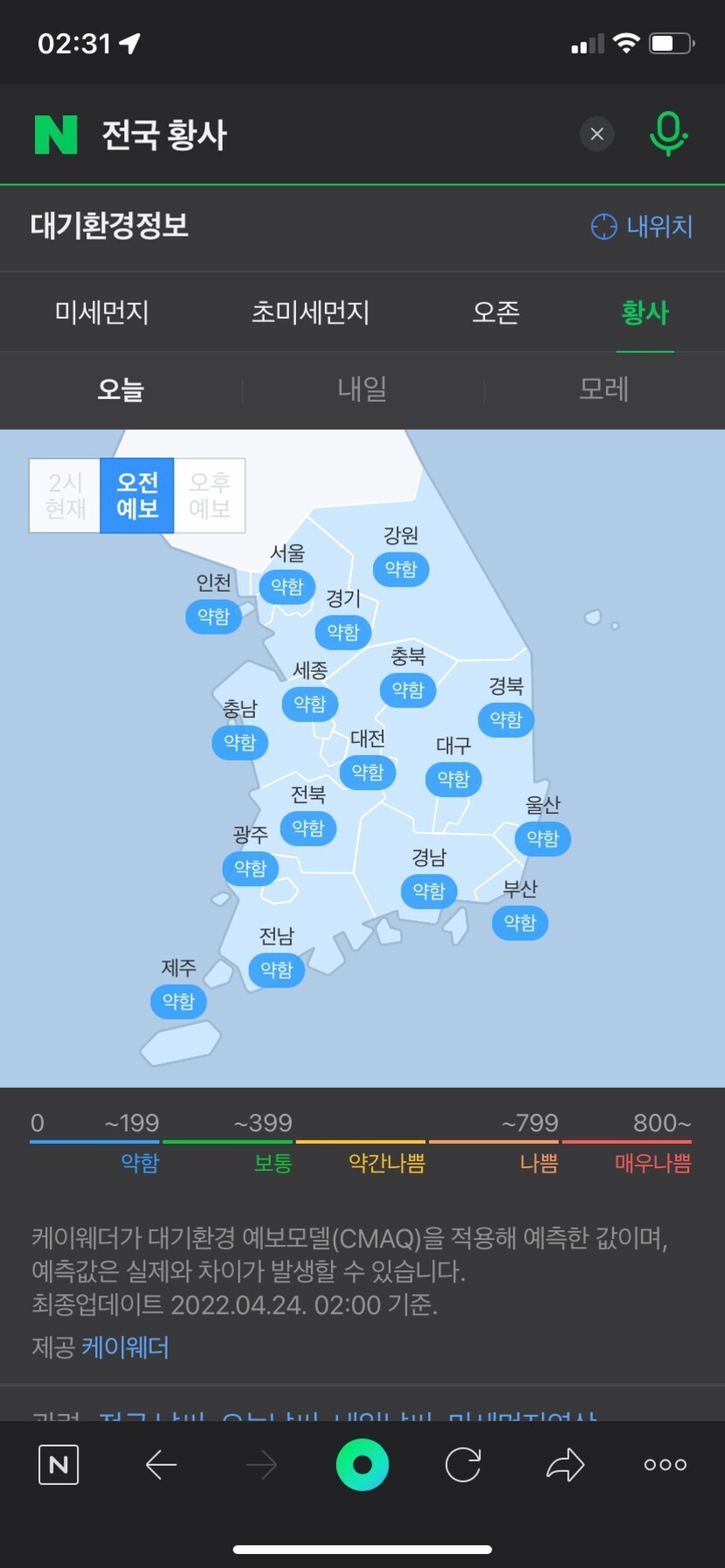 오전 황사지수