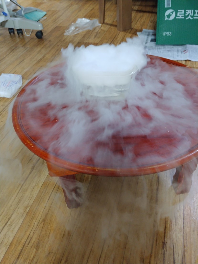 제가 드라이 아이스를 불었는데 연기를 제가 찍었어용~~