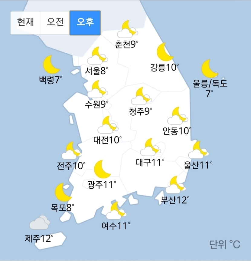 20.02.19 133 읽음 2월 19일 전국날씨 kschol_1234 구독하기 0 18 콘텐츠의 수익 13 전국 날씨전국 미세먼지 농도전국 초미세먼지 농도오늘 날씨는 대체로 맑고 일교차가 크게 벌어집니다 미세먼지농도는 옅지만 오후에는 초미세먼지농도가 짙게 나타납니다 18 0 / 300 입력
