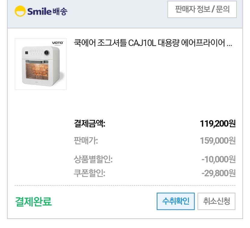 가전제품 빅세일 쿠폰써서 119,200원에 샀어요.😍