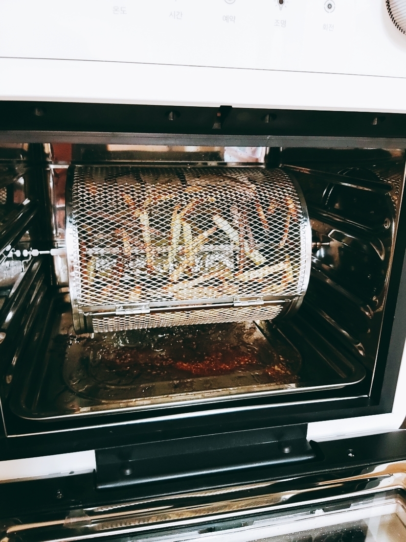 200도 정도 온도에 15분 공회전 시키고~