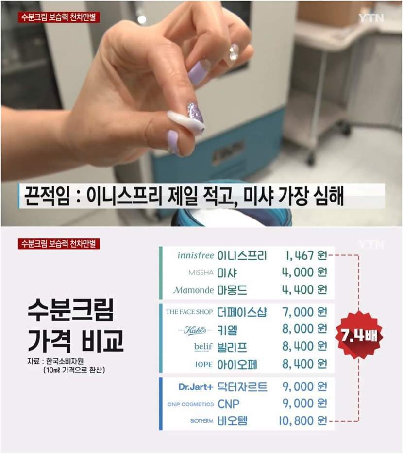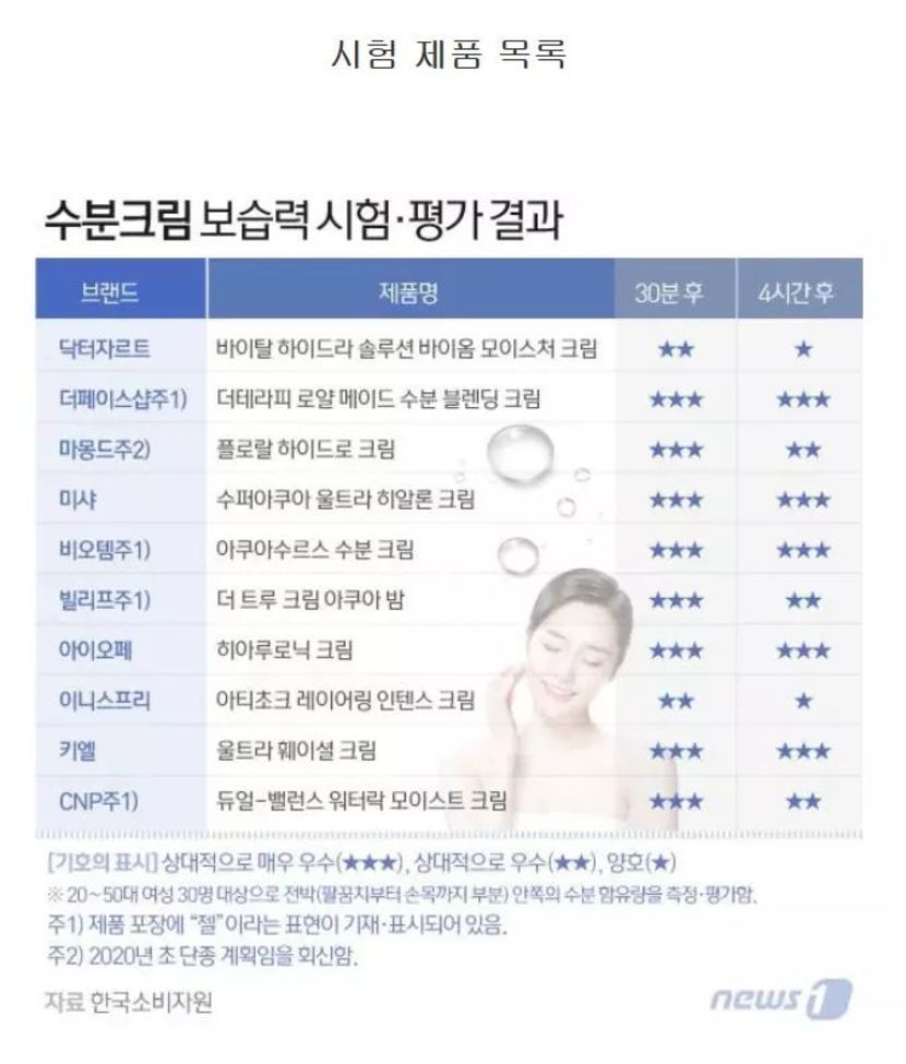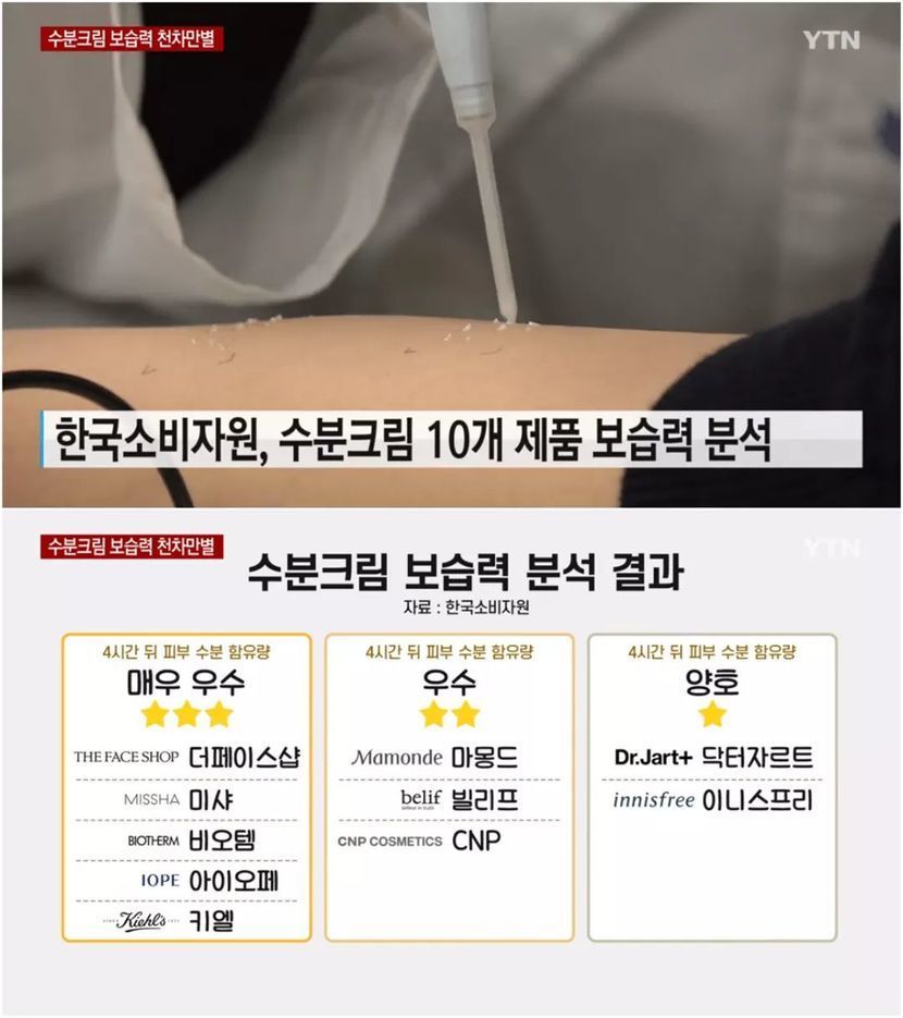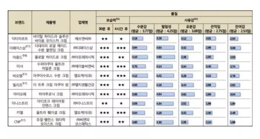 한국소비자원이 분석한 브랜드별 수분크림 결과