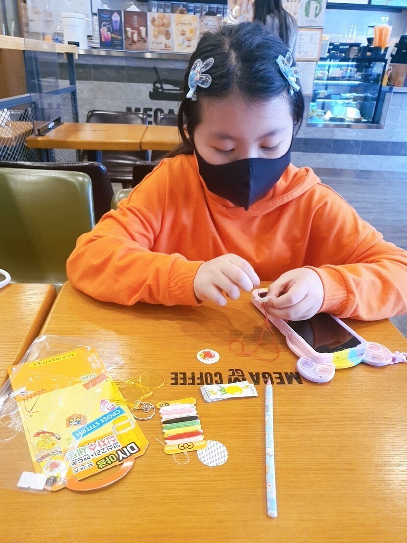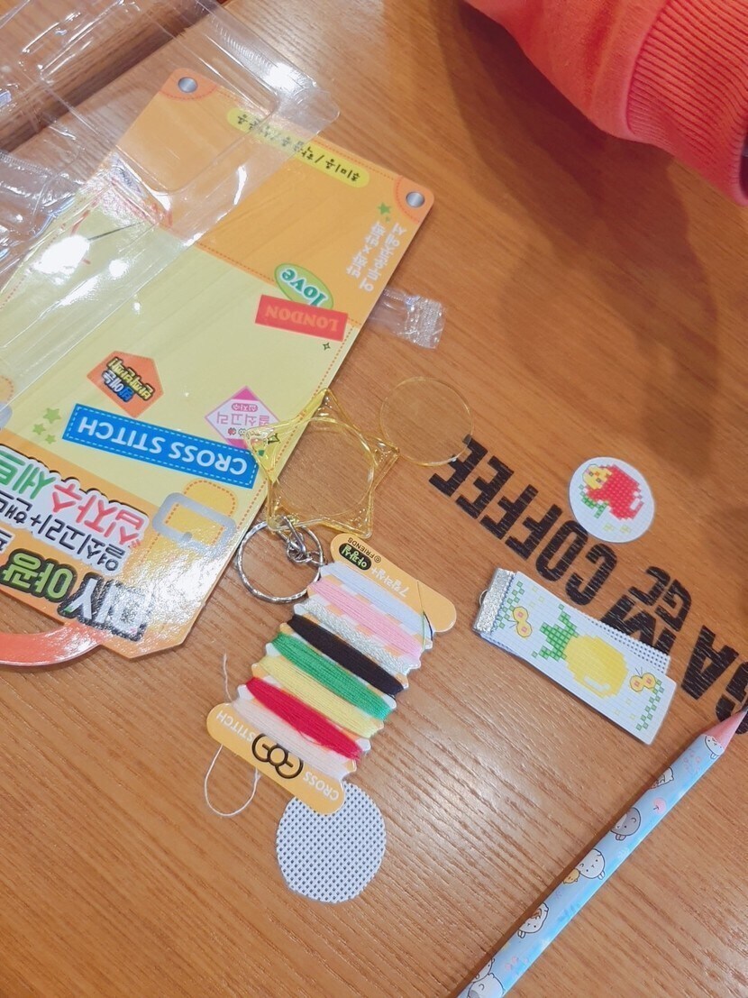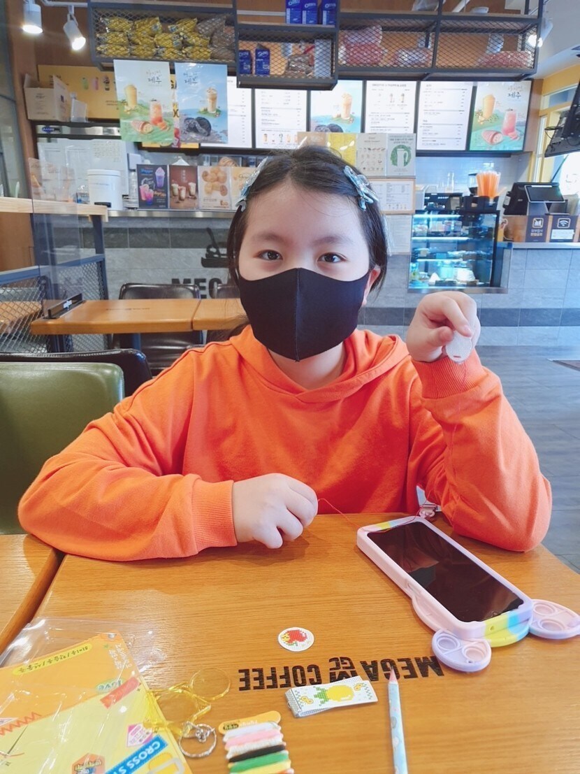가까운 문구점에서 어린이용 십자수세트를 샀어요.