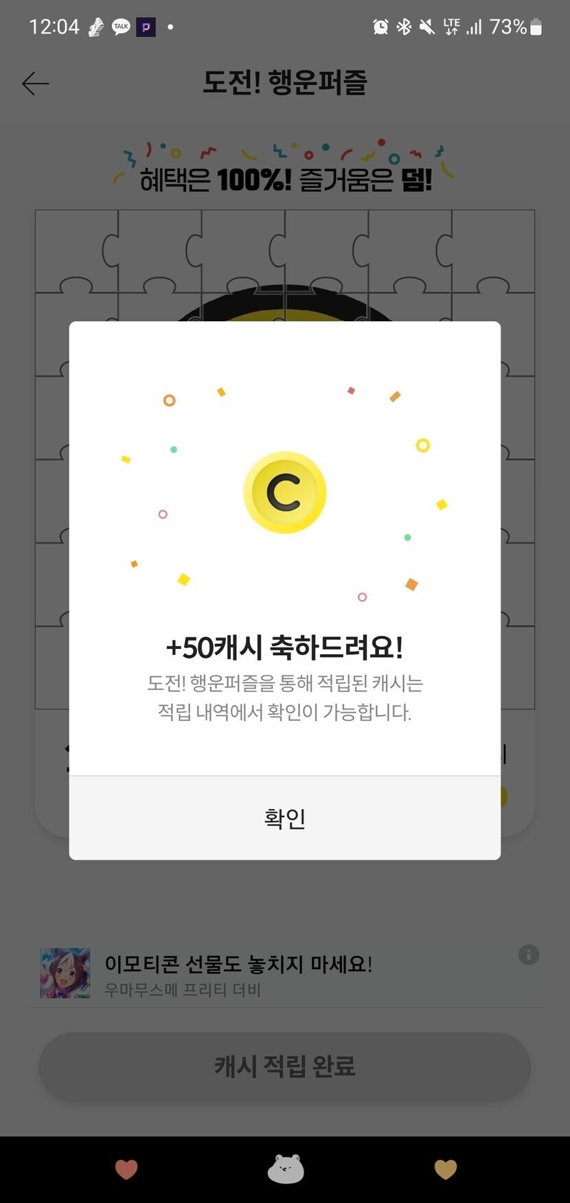 행운퍼즐 미션달성