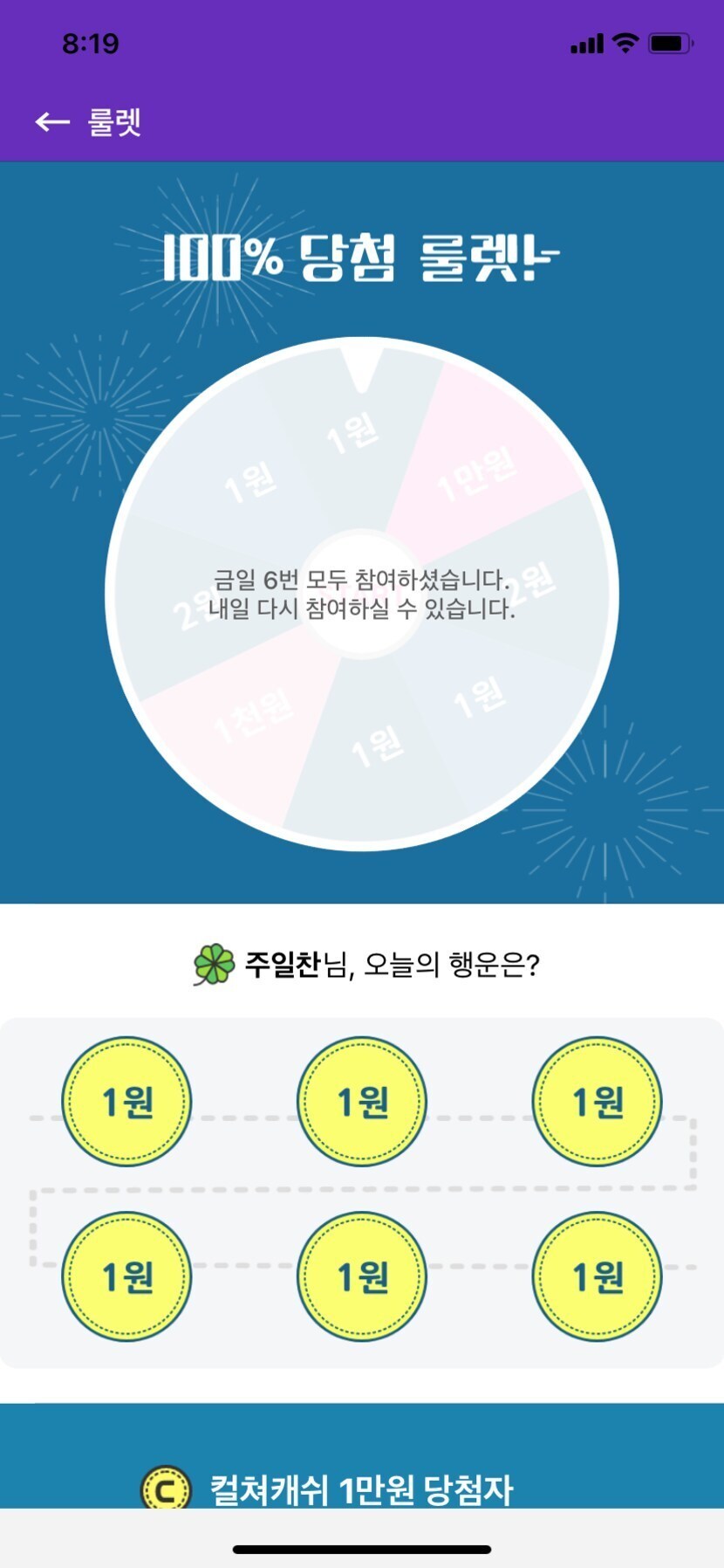오늘의 컬쳐캐쉬 인증샷