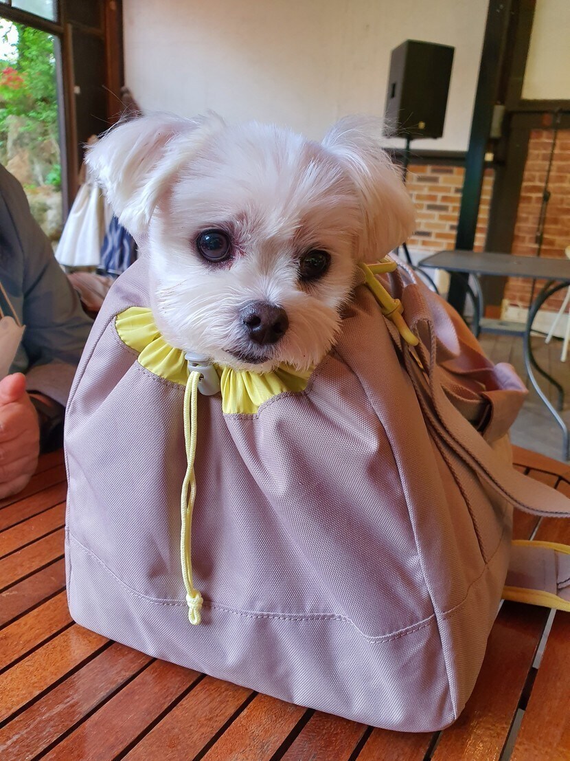 똘이 인사드려요~^^ 야외 까페에서~