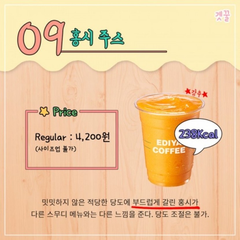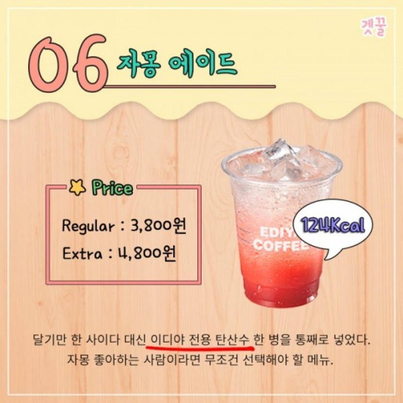 음료별 칼로리도 적어두었으니