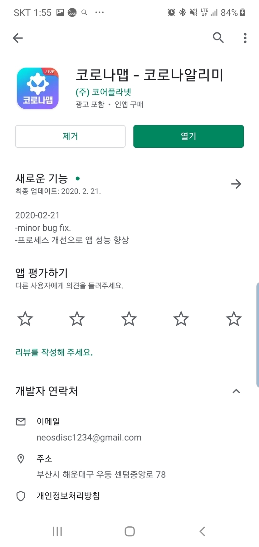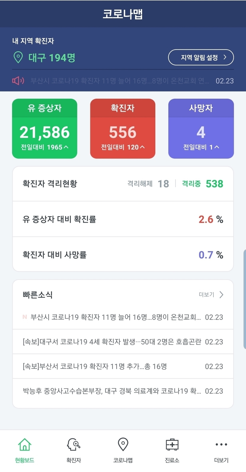 20.02.23 301 읽음 신종코로나바이러스 때문에 걱정이 많을텐데 안전하게 예방하기 좋은 앱을 소개합니다. gloomy day 구독하기 0 21 콘텐츠의 수익 37 플레이 스토어에서 코로나맵 - 코로나 알리미를 입력하시면 밑에 사진과 같이 나옵니다^^앱을 깔고 들어가시면 회원가입 없이 이용할 수 있고 지역 설정을 하시면 유 증상자,확진자,사망자 정확하게 나옵니다. 모두 안전에 주의하시고 건강하시길 기도합니다. 21 0 / 300 입력
