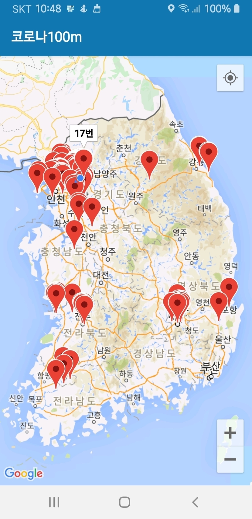 정부에서 외주 용역을 줘서 개발된 우한폐렴(신종코로나) 관련 어플입니다.